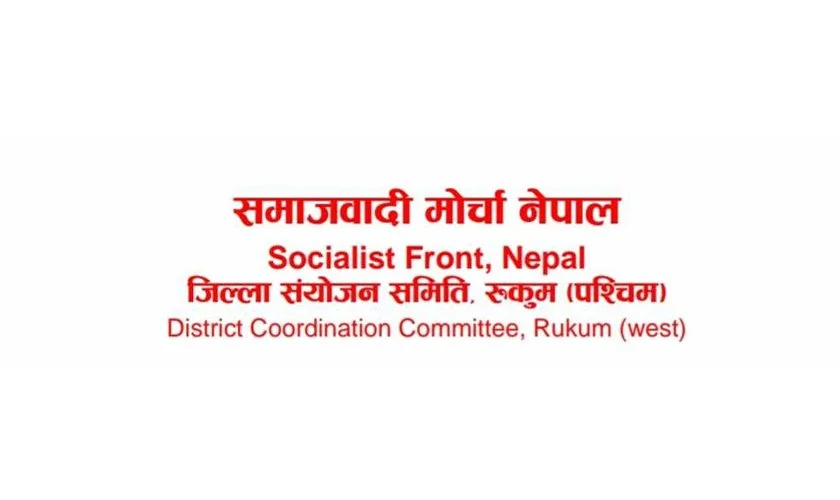 रुकुम पश्चिम । रुकुम पश्चिममा समाजवादी मोर्चा नेपालको जिल्ला संयोजन समिति गठन भएको छ । शुक्रबार मुसिकोटमा बसेको नेकपा (माओवादी केन्द्र), नेकपा (एकीकृत समाजवादी) र विप्लव नेतृत्वको नेपाल कम्युनिस्ट पार्टीको संयुक्त बैठकले मोर्चा गठन गरेको हो ।