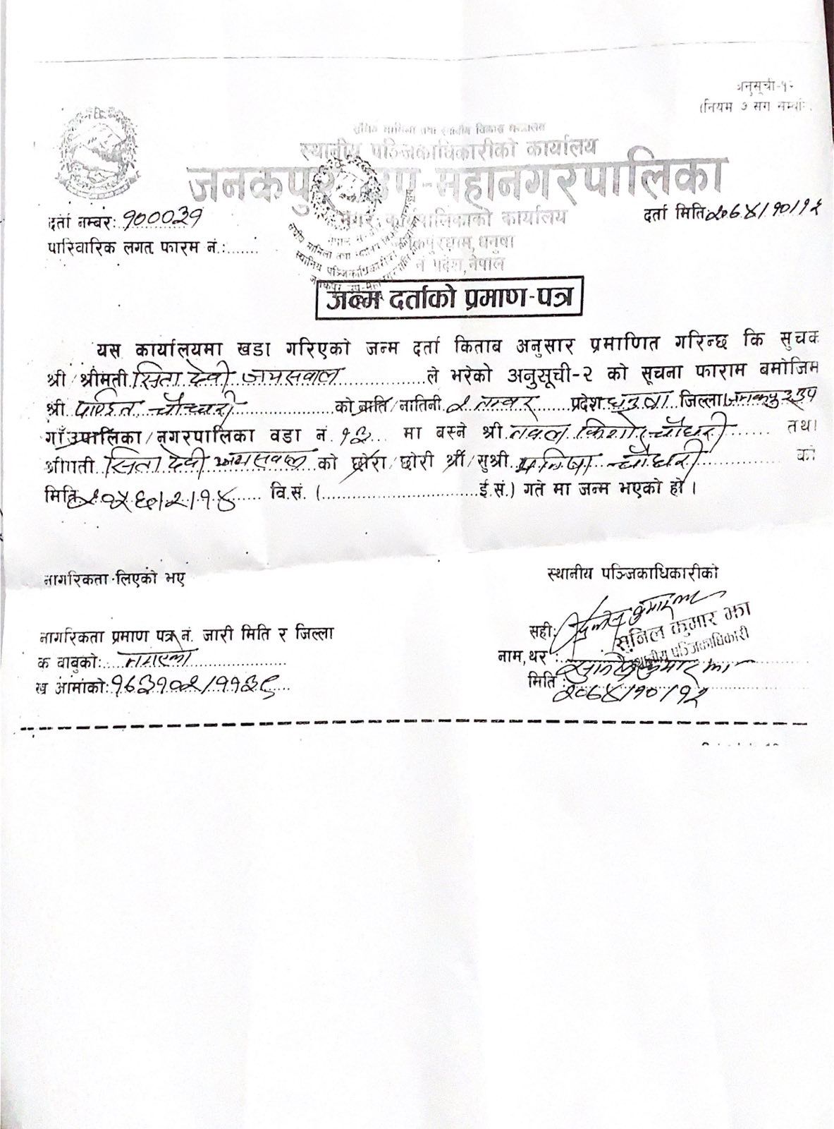 अझ गम्भीर विषय के छ भने, सीता देवी चौधरीले भारत र नेपाल दुवै देशको नागरिकता लिएको दाबी गरिएको छ। यदि यो तथ्य पुष्टि भएमा यो प्रचलित कानुनअनुसार गम्भीर अपराध मानिन्छ। श्रोतका अनुसार उनले धनुषा जिल्लाकी एक महिलाको छोरी बनेर नेपाली नागरिकता लिएको आरोपसमेत लागेको छ।