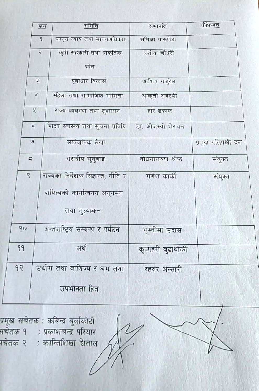 रास्वपाले तय गर्‍यो संसदीय समिति सभापतिका उम्मेदवार